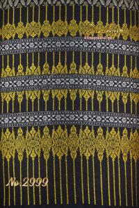 ผ้าชุดยกใหญ่ ลาย รัตนชาติ (แยกกาบใบทอง) ยกกรอบสังเวียน พุ่งไหมดำบนเส้นยืนสีดำธรรมชาติตำรับโบราณหน้ากว้าง100ซม. ผ้าตัดเสื้อยาว220ซม. ผ้าซิ่นยาว220ซม. หน้านาง10ซม.