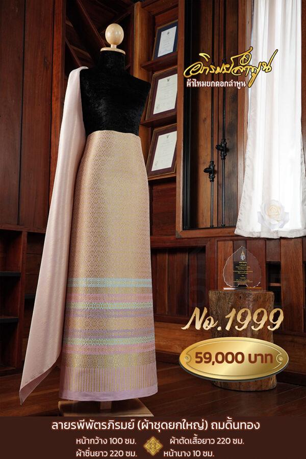 ผ้าชุดยกใหญ่ลาย รพีพัตรภิรมย์ถมดิ้นทอง หน้ากว้าง100ซม. ผ้าตัดเสื้อยาว220ซม. ผ้าซิ่นยาว220ซม. หน้านาง10ซม.