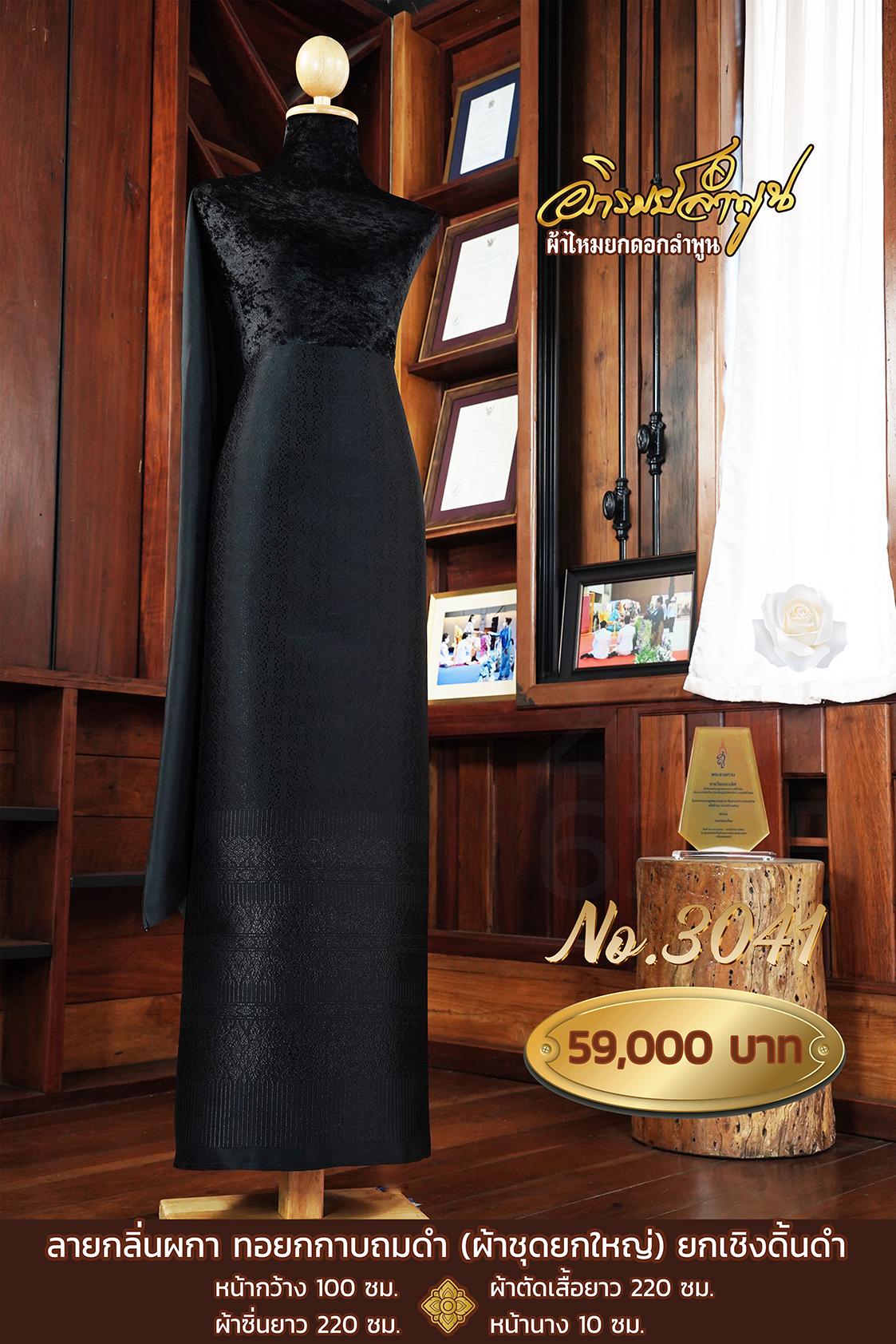 ผ้าชุดยกใหญ่ ลายกลิ่นผกาทอยกกาบถมดำ ยกเชิงดิ้นดำ หน้ากว้าง100ซม. ผ้าตัดเสื้อยาว220ซม. ผ้าซิ่นยาว220ซม. หน้านาง10ซม.