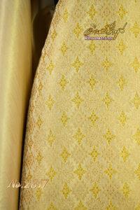 ผ้าชุดยกใหญ่ ลายจันทร์ยกฉัตรทอแยกกาบถมทอง หน้ากว้าง100ซม. ผ้าตัดเสื้อยาว220ซม. ผ้าซิ่นยาว220ซม. หน้านาง10ซม.