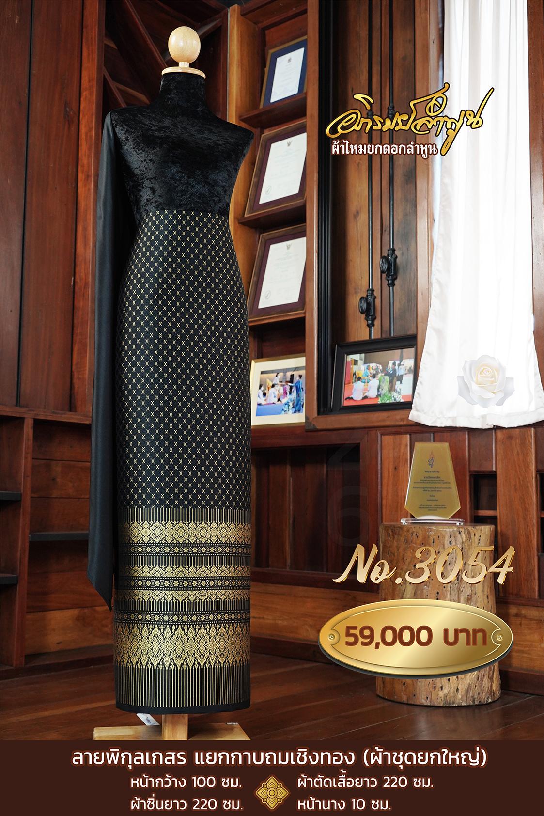 ผ้าชุดยกใหญ่ ลายพิกุลเกสร แยกกาบถมเชิงทอง หน้ากว้าง100ซม. ผ้าตัดเสื้อยาว220ซม. ผ้าซิ่นยาว220ซม. หน้านาง10ซม.