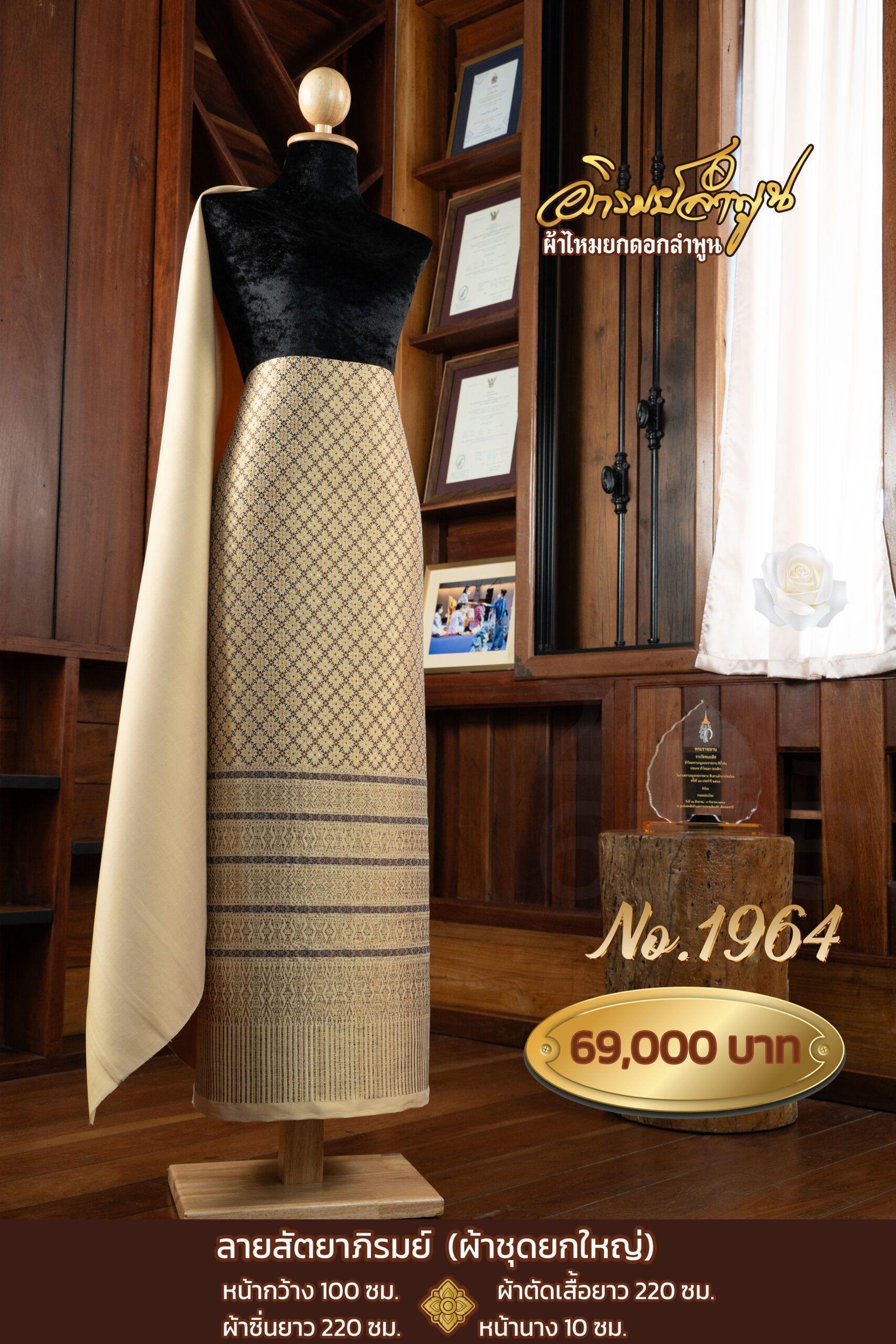 ผ้าชุดยกใหญ่ ลายสัตยาภิรมย์ หน้ากว้าง100ซม. ผ้าตัดเสื้อยาว220ซม. ผ้าซิ่นยาว220ซม. หน้านาง10ซม.