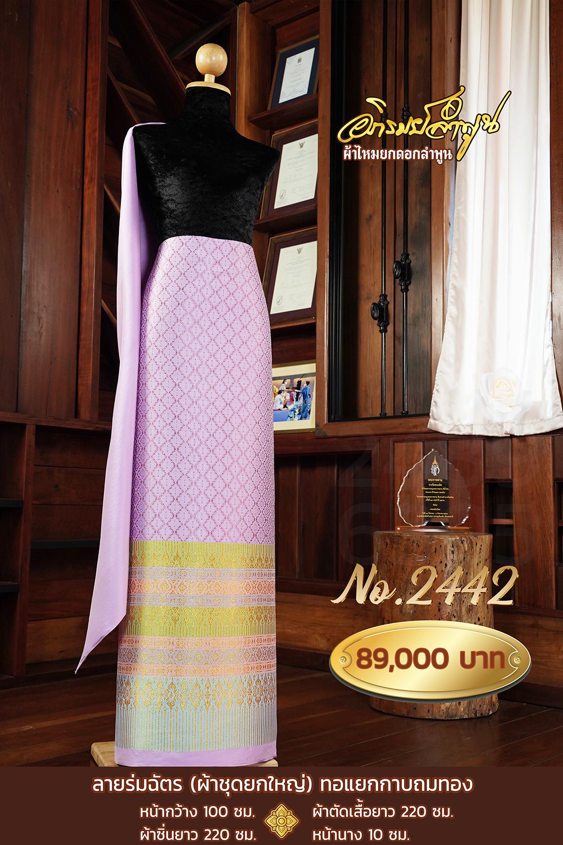 ผ้าชุดยกใหญ่ ลายร่มฉัตร(ทอแยกกาบถมทอง) หน้ากว้าง100ซม. ผ้าตัดเสื้อยาว220ซม. ผ้าซิ่นยาว220ซม. หน้านาง10ซม.